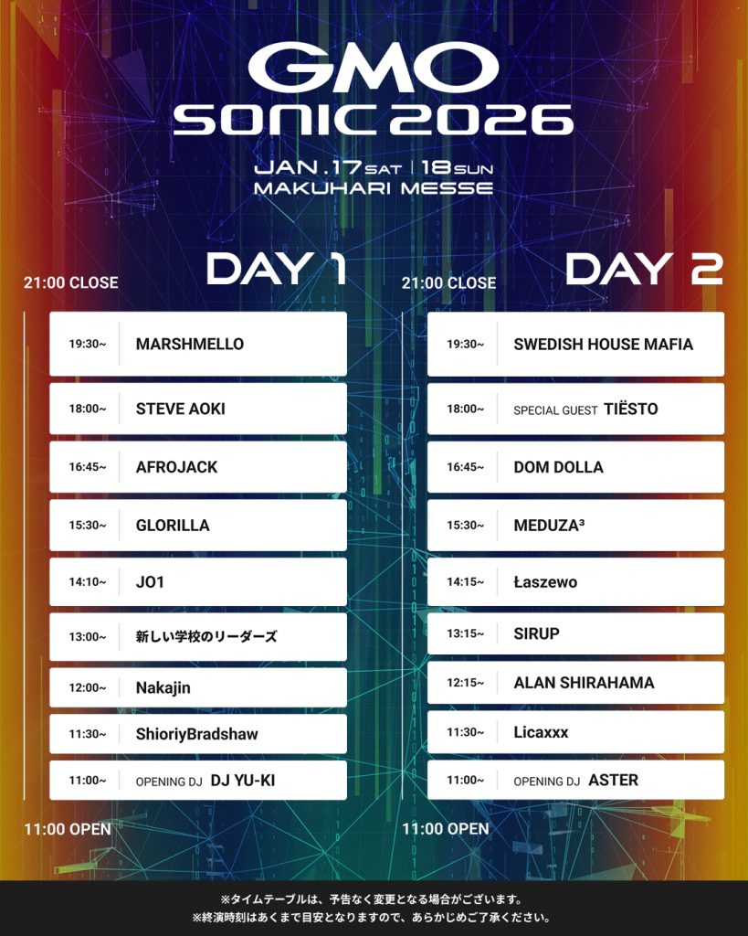 ※タイムテーブルは予告なく変更になる場合がございます。予めご了承ください。