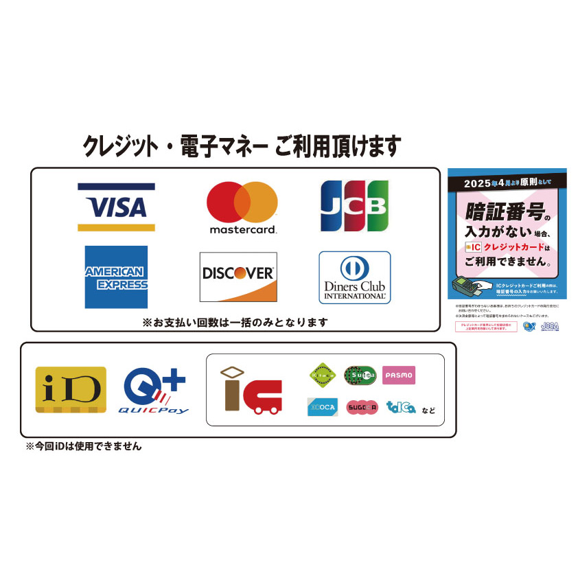 現金、クレジットカード、電子マネーがご利用いただけます。