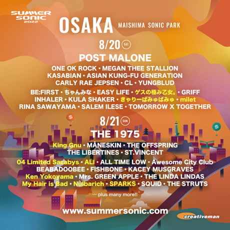 SUMMER SONIC 2022 新たに11組の追加アーティストが決定!