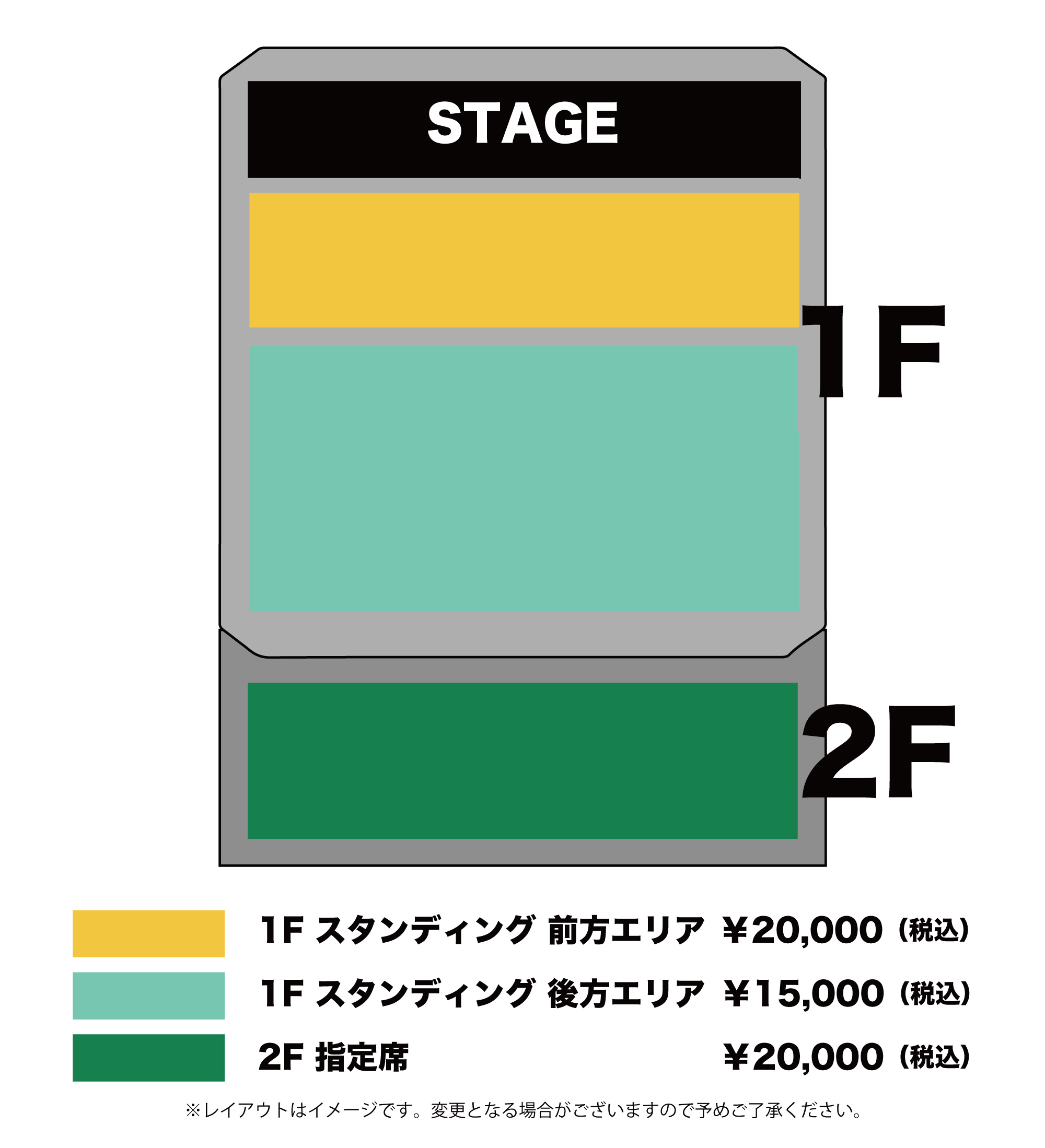 ※ハンディキャップエリアをご希望のお客様は1F スタンディング 後方エリアのチケットをご購入お願いいたします。チケットご購入後、お手数ですがキョードーインフォメーション :0570-200-888へハンディキャップエリア利用申請のご連絡をお願いいたします。(チケットご購入後、早めの申請にご協力をお願いします。)