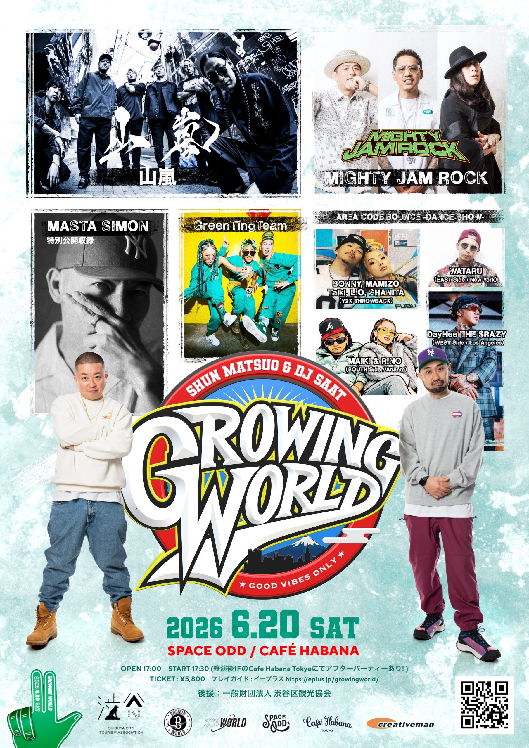 | アーティスト | HOST : 松尾駿(チョコレートプラネット)・DJ SAAT ACT : 山嵐 / MIGHTY JAM ROCK / GreenTingTeam(O.A.) DANCE : AREA CODE BOUNCE -DANCE SHOW- SONNY, MAMIZO, Taiki, LIO, SHANITA (Y2K THROWBACK) WATARU(EAST Side / New York) MAIKI & R!NO(SOUTH Side / Atlanta) BOOMIN'WORLD特別公開収録 : MASTA SIMON |