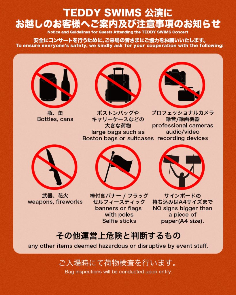 TEDDY SWIMS 公演を安全にコンサートを行うために、ご来場の皆さまにご協力をお願いいたします。