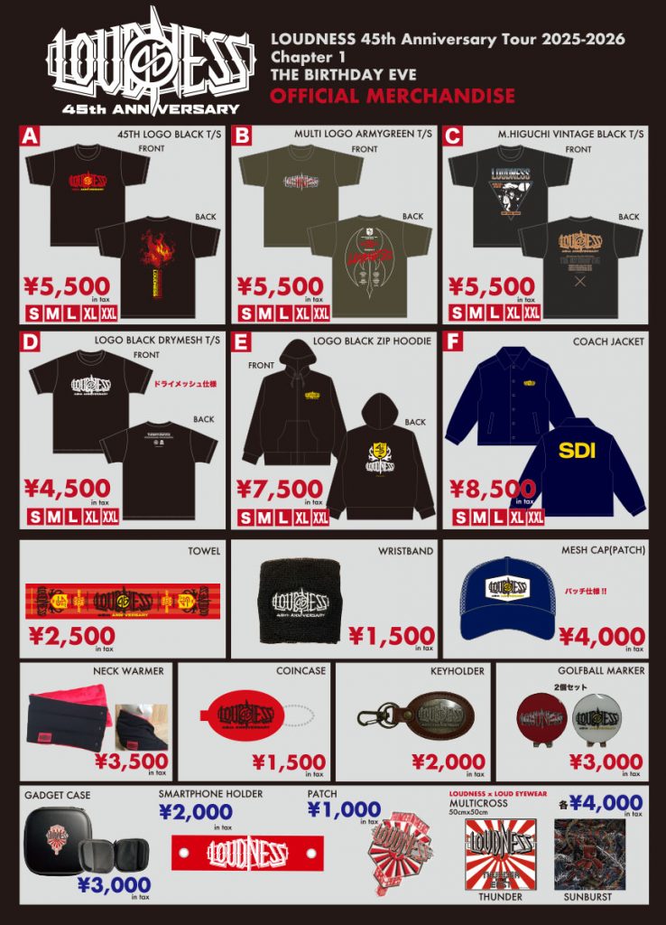 LOUDNESS 45th Anniversary Tour 2025-2026 Chapter 1 THE BIRTHDAY EVEグッズラインナップが公開!