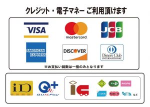 ※お支払いは現金と各キャッシュレスのご利用が可能です。(使用ブランドは一覧でご確認ください)